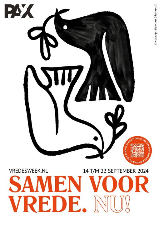 Vrede is meer dan de afwezigheid van oorlog en hoe dit eruit ziet en tot stand komt, gaat iedereen aan. Daarom organiseert PAX al meer dan 50 jaar met duizenden mensen de vredesweek. Ook dit jaar zullen van 14 t/m 22 september 2024 honderden lokale activiteiten samenkomen met een gemeenschappelijk doel: vrede. Vrede komt natuurlijk niet vanzelf, daar moet je aan werken, met elkaar. Daarom is het thema dit jaar: Samen voor Vrede. Nu!